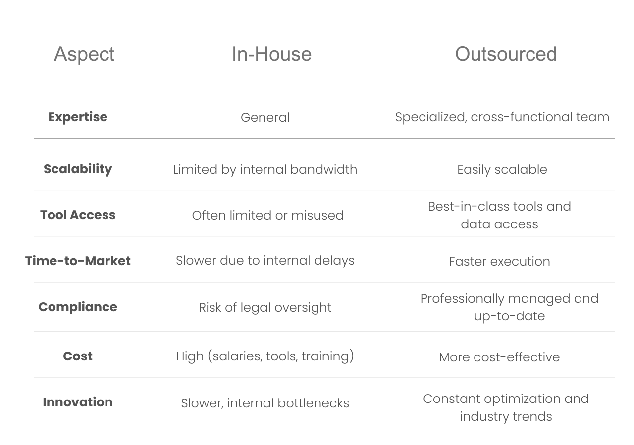 Limited Expertise: Most in-house teams lack specialized skills in areas like compliance, automation, and deliverability—leading to suboptimal campaigns.