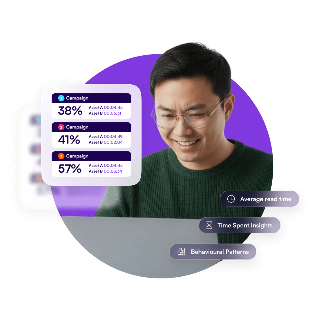See what percentage of your prospects go beyond the first asset – a stronger indicator of interest and buying momentum. Measure average time spent across each asset to understand how deeply prospects engage – and which content truly holds their attention.